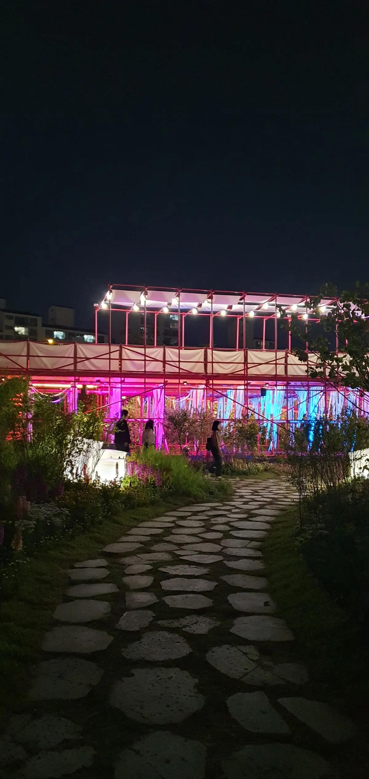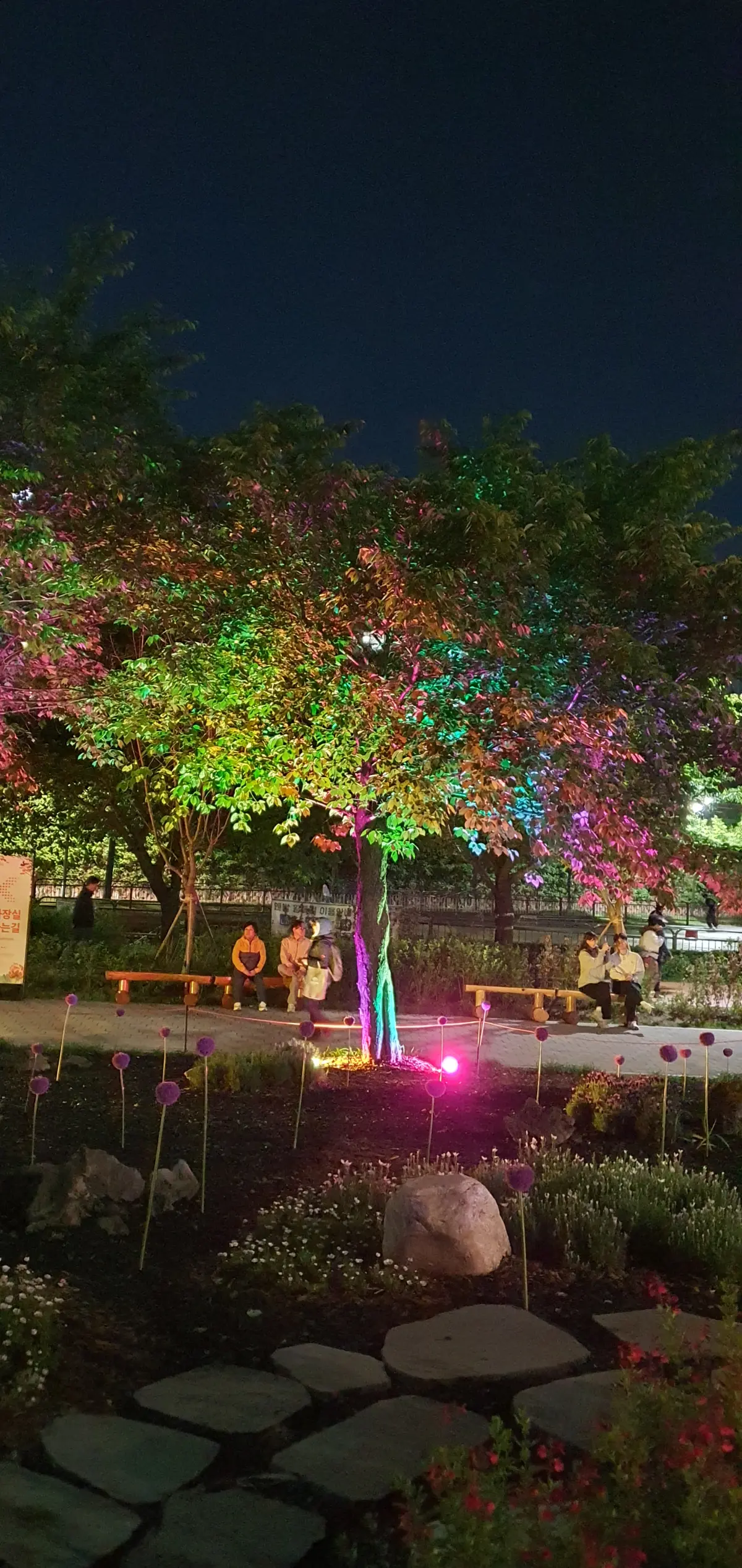 평소 자주 오던 뚝섬한강공원인데요. 길을 너무 예쁘게 꾸며놔서 같은 길인데도 다른 기분이 들더라고요. 다채로운 조명을 활용해서 기분 좋게 걷기 좋았습니다.