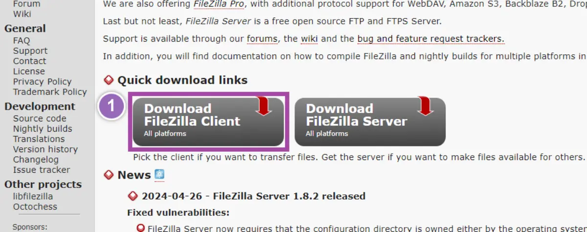 - 다운로드 파일질라 클라이언트(Dawnload FileZilla Client_이미지 1번)를 선택합니다.