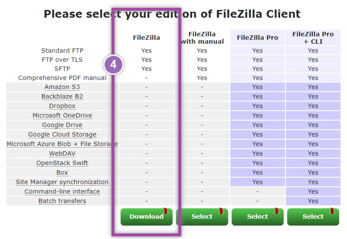 - 파일질라 기본 프로그램을 선택합니다. (이미지 4번)